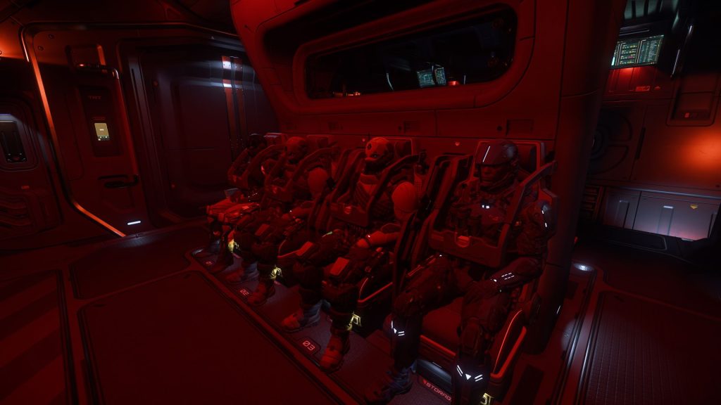 Die Haltebügel drückten auf meine Schultern und pressten mich fest in den Sitz. Links und rechts neben mir saßen schwer gepanzerte und bewaffnete Kämpfer der PMC TYR. Hinter mir befand sich eine weitere Sitzreihe mit Söldnern. Erinnerungen wurden wach an meine erste Begegnung mit TYR. Damals saß ich auch mit Söldnern in einem Truppentransporter und hatte mich dabei extrem unwohl gefühlt. Diesmal war es anders. Kjeld Stormanson, der Kommandant von TYR, hatte uns in ein Alpha- und ein Bravo-Team aufgeteilt. Ich war Teil des Alpha-Teams und Kjeld war mein persönlicher Bodyguard. Die anderen sollten den Weg freiräumen und dafür sorgen, dass ich unbeschadet in den Data-Processing-Raum des Farro Data Centers der ASD auf Pyro IV kommen würde. Mein Auftrag war, mich in das System zu hacken, eine Schlüsselkarte und so viele Daten wie möglich herunterzuladen. Die Schlüsselkarte war unser Ticket zu den dunklen Geheimnissen der ASD im Lazzarus-Labor auf Pyro I.