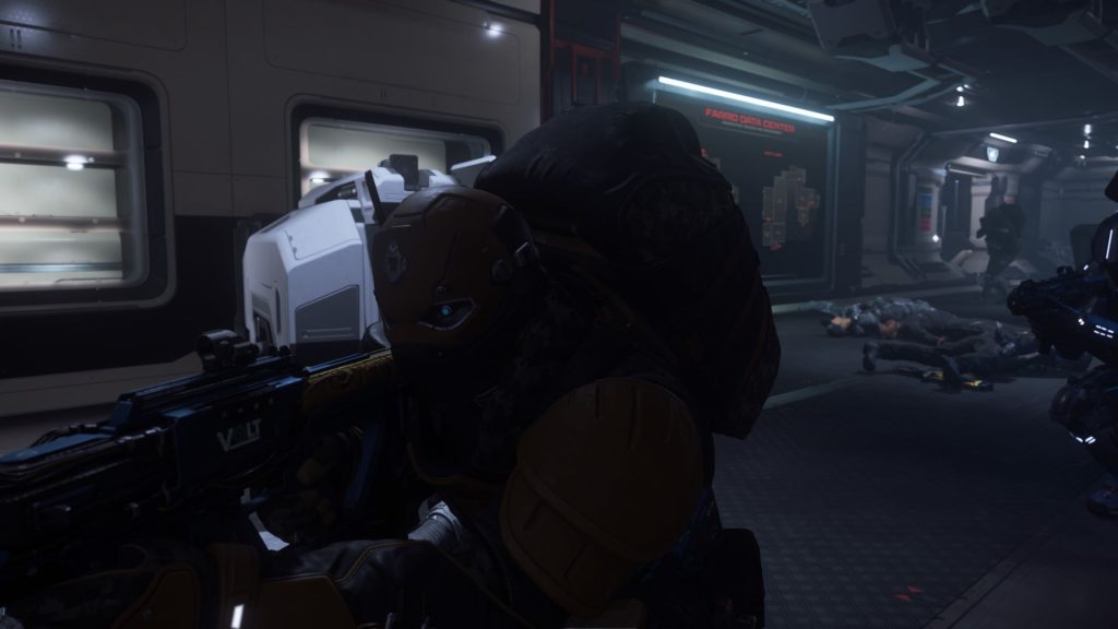 Im Rücken spürte ich den Druck der Triebwerke von der TAC, die wieder in den Himmel stieg und einen Kugelhagel auf die Wachen im Außenbereich regnen ließ. Wir waren direkt neben dem Hauptgebäude gelandet. Das Bravo-Team hatte bereits die Rampe zum Nebeneingang 5 gesichert.