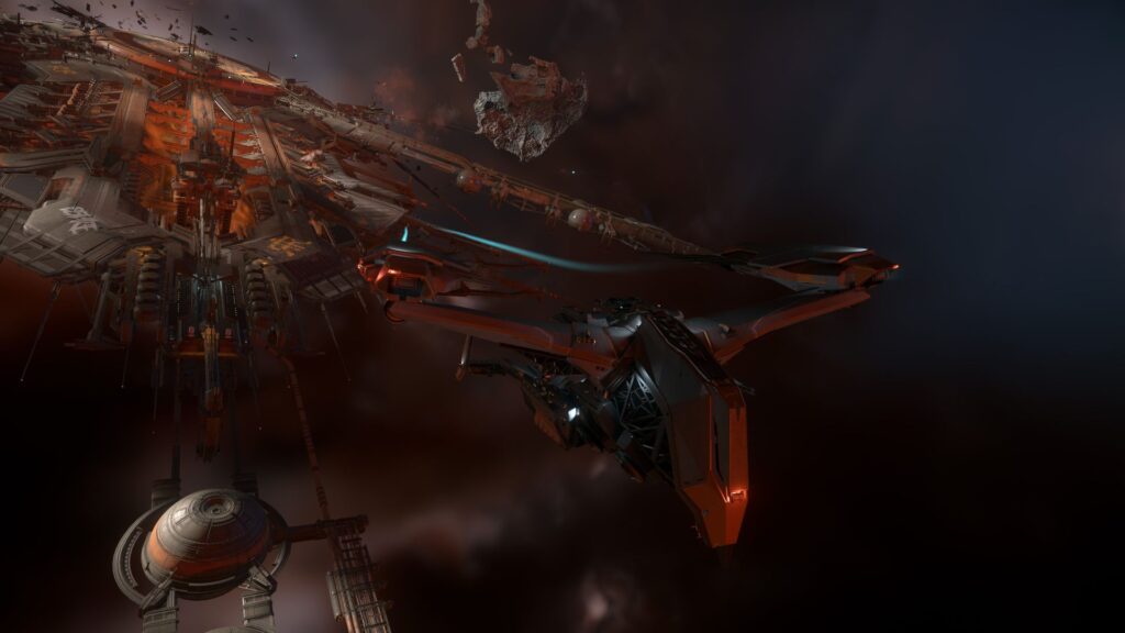 Die Tür des Fahrstuhls vom Hangar quietschte erbärmlich, als sie zögerlich aufging. Ich trat einen Schritt in die Station und schaute mich um. In großen Metallkisten brannten Feuer, überall lag Müll und Unrat. Ruin Station war genauso heruntergekommen wie alle Raumstationen im Pyro-System. Nachdem das Bergbauunternehmen Pyrotechnic Amalgamated das Pyro-System verlassen hatte, wurden die Raumstationen von Gangs übernommen. In die Wartung wurde seitdem nicht mehr investiert.