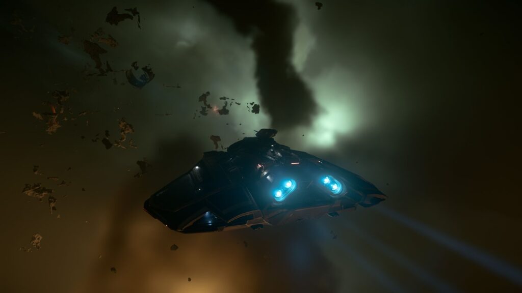 Nach einem langen Flug erreichten wir den Nyx-Sprungpunkt. Dunkle Gaswolken, Fetzen von Asteroiden und zerstörten Raumstationen umgaben uns. In der Ferne glühte rötlich das Wurmloch. Alaska brach als erster das Schweigen.