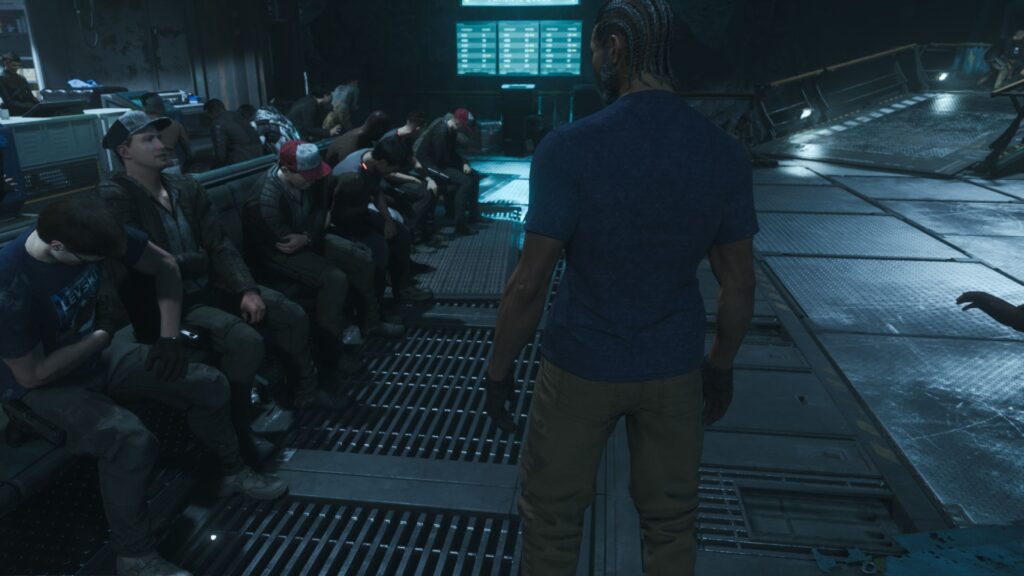 In einer verlassenen Kontrollstation des Bohrlochs standen wir uns zwischen alten Kisten und losen Kabeln gegenüber. Brubacker erzählte seltsam klingende Geschichten. Von Zeitreisen, Angriffen der Vanduul und einer Geheimorganisation, die die Menschheit retten will. Die Vanduul wollten die Zeitreise-Technologie stehlen und die Menschheit in der Vergangenheit angreifen. Smith und er würden dabei eine Rolle spielen. Es klang total verrückt. Alaska unterstellte Brubacker Märchen zu erzählen. Der gestand ein, dass es auch ihm unglaubwürdig vorkam. Doch was würde nach dem Erlebten in der Onyx-Anlage noch seltsam klingen? Alaska schien nicht zufrieden. Brubacker reagierte ungehalten. Betonte, dass jeder freiwillig dabei war und er empfohlen hätte, besser auszusteigen.