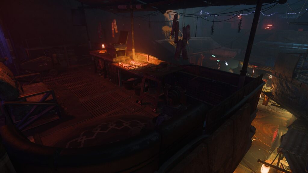 Oben – die Galerie oberhalb des Marktes. Das Reich der Gangs, der Ort, an dem die dunklen Geschäfte abgewickelt wurden. Zutritt nur auf Einladung. An einem Stand kaufte ich eine Dose Rust und wartete – fünf Minuten. Dann stand ich an der Treppe. Die Wache richtete schweigend ihre Waffe auf mich.