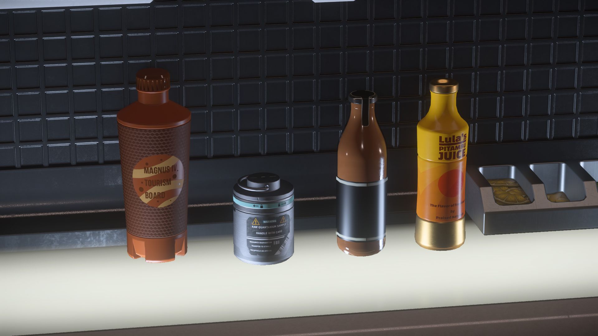 Auf dem Flug nach Levski betrachtete ich meine Funde. Die Getränke schienen seltene Waren aus anderen Sternensystemen zu sein. Ich fragte mich, ob sich damit bei der feinen Gesellschaft in Stanton Geld verdienen ließe. Ich öffnete eine Dose mit Quantanium-Wasser, setzte mich auf das rote Sofa und dachte über die Ermittlungsergebnisse nach.