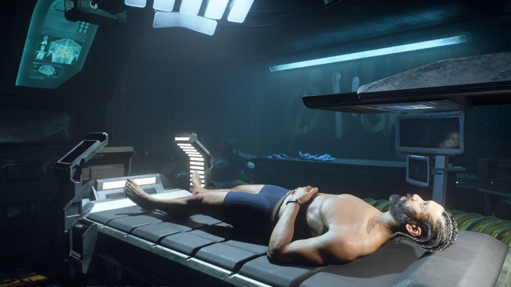 My eyes opened. I was back in this world, with clear vision and clear memories. Shit—I had died during the mission in the Lazarus complex. Now what? Around me was dirt and medical monitors. This must be an infirmary in Pyro. I had been regenerated—in a new body. Could the imprint technology work in Pyro? Apparently yes—otherwise I wouldn’t be here. But was I complete? I slowly sat up and sat on the edge of the bed. I felt my naked body. Arms—legs—everything was there. But what about the others from my team?